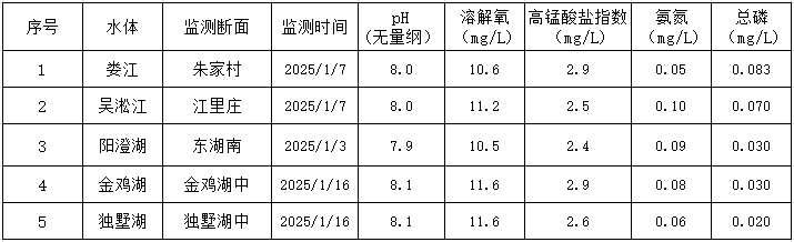 2025年1月蘇州工業園區地表水監測結果