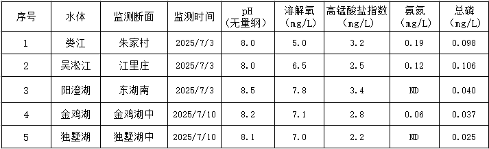 2025年7月蘇州工業園區地表水監測結果