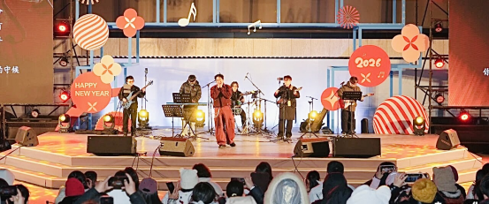 在不遠處的月光碼頭全新藝術(shù)裝置為城市的浪漫氛圍注入藝術(shù)質(zhì)感。“月光下的戲劇周”沿湖開啟音樂與戲劇交織的童話巡游,引得市民游客紛紛駐足拍照。同時以戲劇巡游、陽臺快閃、舞臺演出等演藝活動,以及匯聚33家美食、文創(chuàng)的潮流市集,與市民游客一起浪漫迎新。