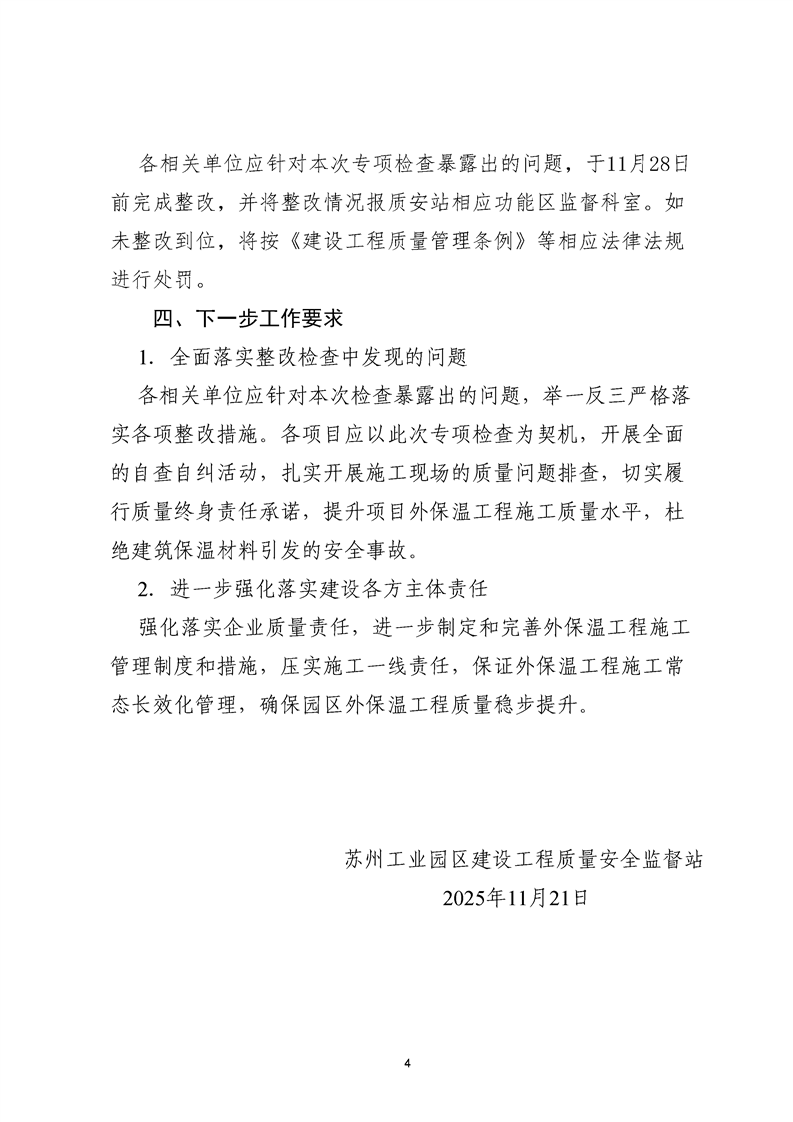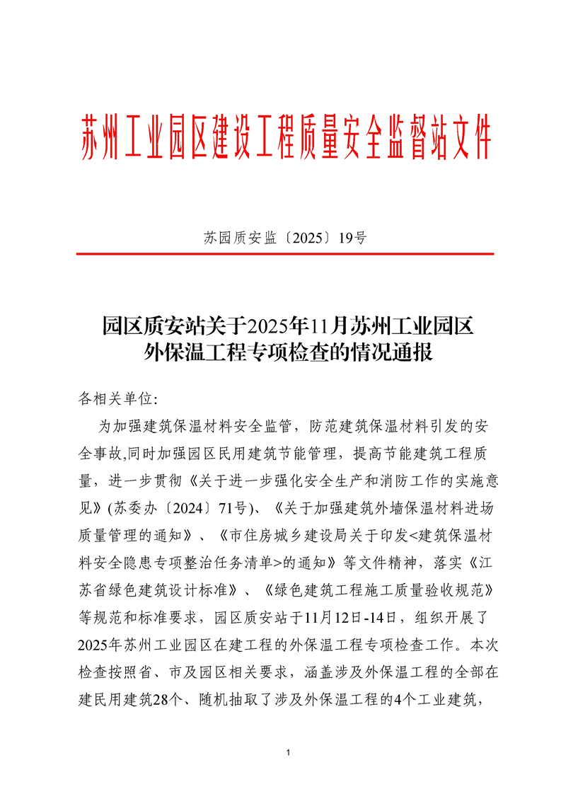 園區(qū)質(zhì)安站關(guān)于2025年11月蘇州工業(yè)園區(qū)外保溫工程專(zhuān)項(xiàng)檢查的情況通報(bào)