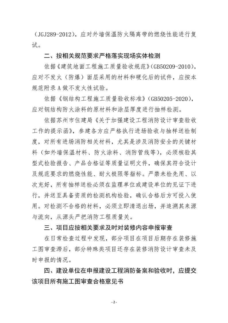 關于近期建筑工程消防施工質量監督檢查和消防驗收現場評定問題的提示函