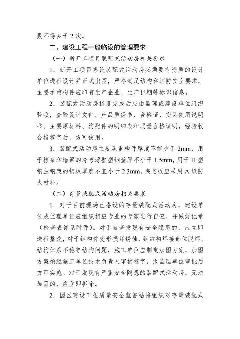 園區質安站關于進一步加強蘇州工業園區建設工程裝配式活動房安全管理工作的通知