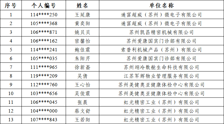 按照《省人力資源社會保障廳 省財政廳關于加快落實擴大社會保險補貼范圍政策有關工作的通知》(蘇人社函〔2025〕238號)文件規定,擬對以下符合補貼條件人員進行公示,公示自發布之日起,期限為7天,如對以上公示內容有異議,請向園區就業管理服務中心反映。