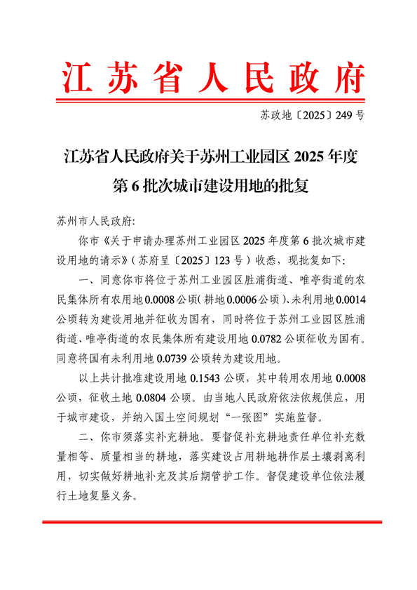 蘇州工業(yè)園區(qū)2025年度第6批次城市建設(shè)用地-批文