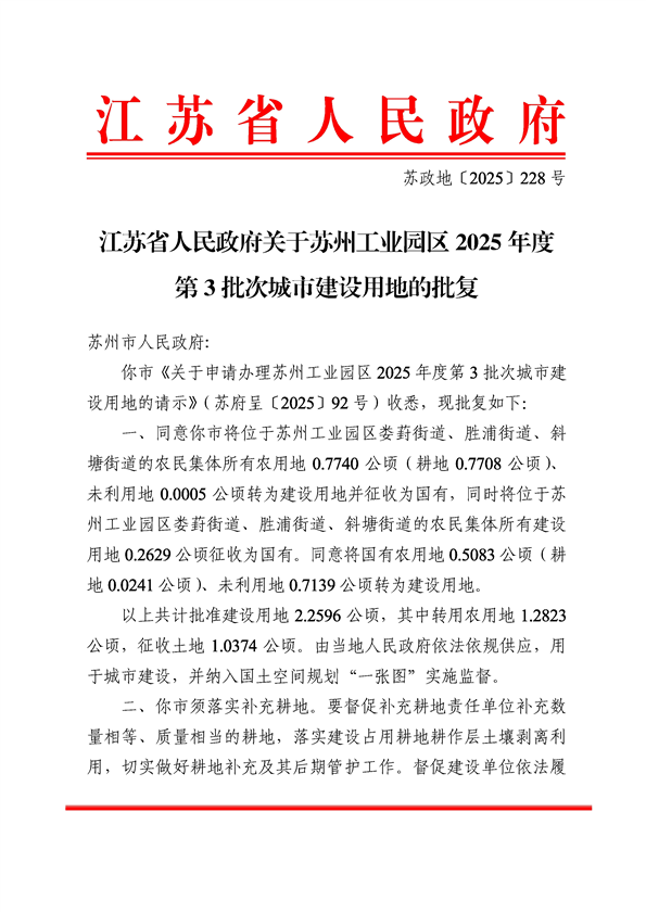 蘇州工業園區2025年度第3批次城市建設用地-批文