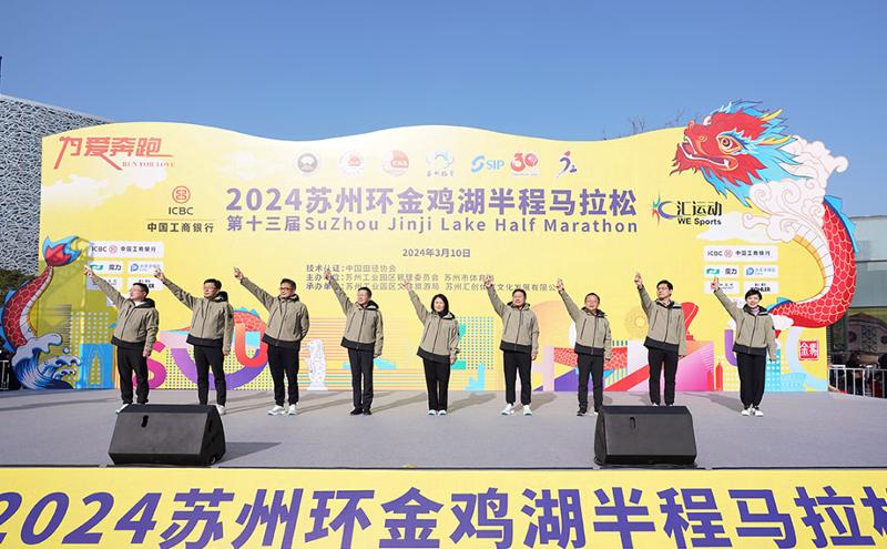 3月10日8時半、2024第13回蘇州環金鶏湖ハーフマラソンが熱気満々でスタートした。今年のイベントにはハーフマラソン(21.0975キロメートル)、ヘルスラン(約10キロメートル)、ファンラン(約5キロメートル)が含まれ、合計で3萬人の選手が參加した。