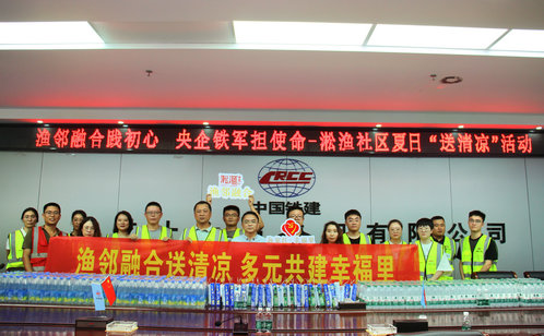 中國鐵建的前身是中國人民解放軍鐵道兵,在中國人民革命解放戰爭、抗美援朝戰爭和新中國社會主義建設中,他們為中華民族的解放事業和建設事業做出了不朽的貢獻。今天,新一代鐵建員工,秉承鐵道兵“逢山鑿路,遇水架橋”精神,為國家的繁榮富強和人民的幸福生活筑夢。淞漁社區為蘇州地鐵八號線建設者送上了花露水、香皂、鹽汽水等清涼物資,還送上了寫著“漁鄰融合踐初心,央企鐵軍擔使命”的錦旗表達敬意?!拌F道兵精神的核心內涵是艱苦奮斗、志在四方,我們將把這份關懷轉化為工作動力,繼續為項目順利推進貢獻力量?!敝需F十六局集團有限公司蘇州VIII-TS-14-2標項目經理部黨支部書記禹鵬飛說道。
