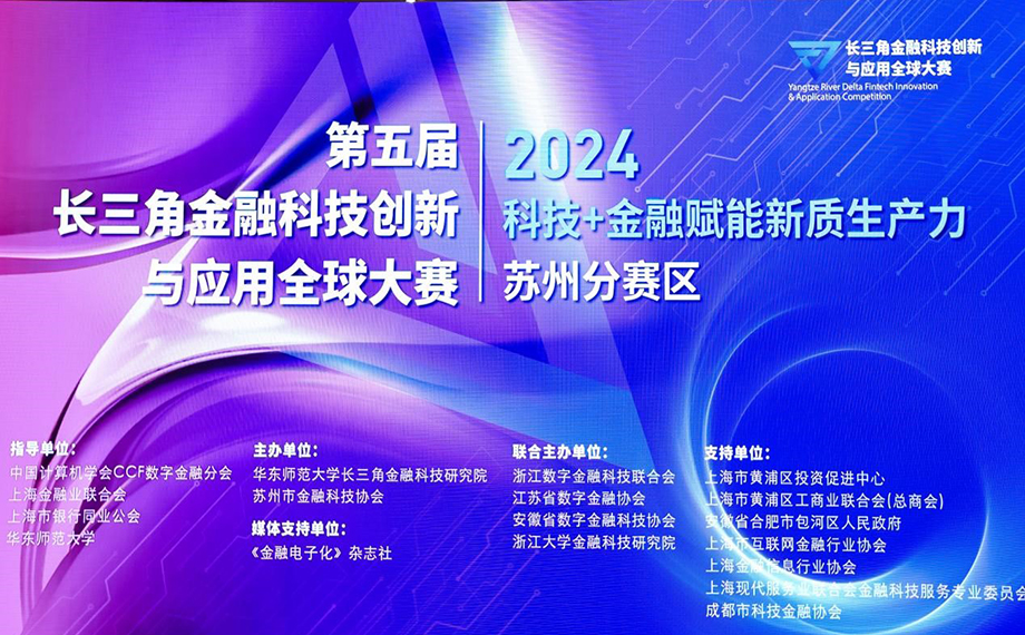 10月16日,由華東師范大學(xué)長三角金融科技研究院、蘇州市金融科技協(xié)會牽頭,聯(lián)合上海市黃浦區(qū)投資促進中心、浙江數(shù)字金融科技聯(lián)合會、江蘇省數(shù)字金融協(xié)會、安徽省數(shù)字金融科技協(xié)會、浙江大學(xué)金融科技研究院等單位共同舉辦的“第五屆長三角金融科技創(chuàng)新與應(yīng)用大賽蘇州分賽區(qū)”活動在江蘇省蘇州金雞湖國際會議中心成功舉辦。
