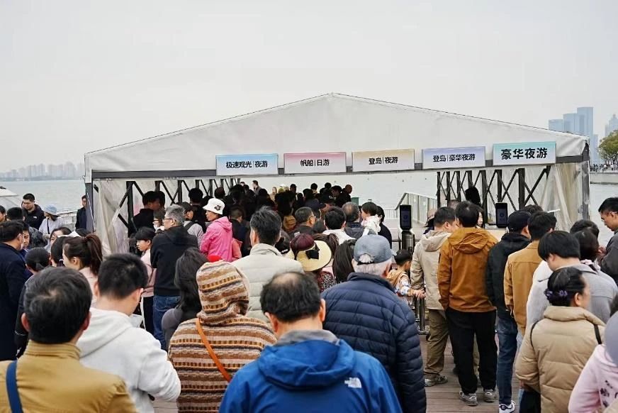 除了在河岸觀賞,乘著游船看噴泉則帶來另一種不一樣的體驗,清明小長假,一場以“水”為媒的文旅狂歡席卷蘇城。