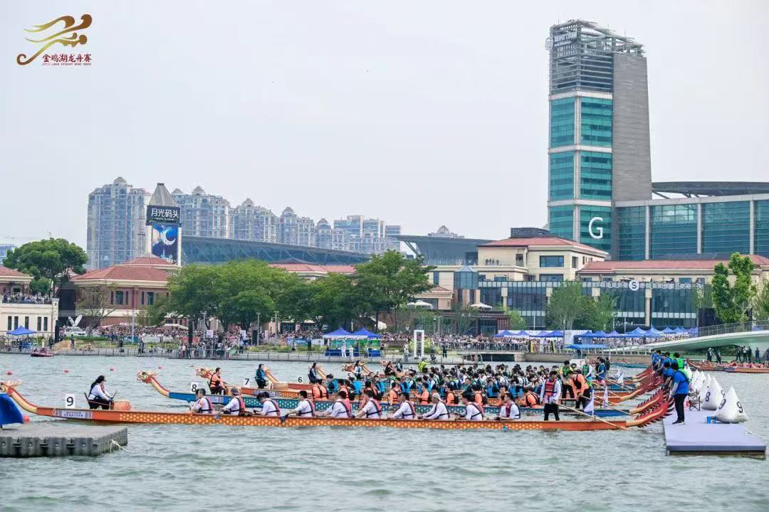 一年一度的金雞湖端午龍舟賽在蘇州工業(yè)園區(qū)月光碼頭鳴鑼開(kāi)賽,69支隊(duì)伍揮槳逐浪。
