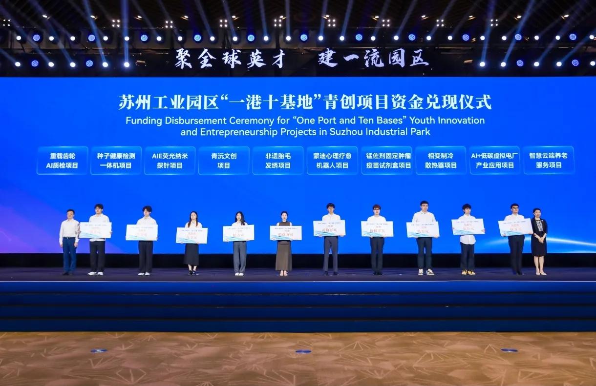 青年是城市發(fā)展的活力源泉。今年3月,園區(qū)發(fā)布“園夢(mèng)未來”青年人才創(chuàng)新創(chuàng)業(yè)三年行動(dòng)計(jì)劃,打造“一港十基地”青創(chuàng)空間,新設(shè)1億元青創(chuàng)資金專項(xiàng)用于遴選青年人才項(xiàng)目。新政實(shí)施以來,累計(jì)舉辦56場青創(chuàng)活動(dòng),改造4個(gè)人才社區(qū),發(fā)放415張人才房票,補(bǔ)貼金額超5300萬元,引進(jìn)青年人才超4萬。開幕式上,園區(qū)“一港十基地”青創(chuàng)項(xiàng)目資金正式兌現(xiàn),為“一港十基地”項(xiàng)目路演一二三等獎(jiǎng)及優(yōu)勝獎(jiǎng)等10個(gè)獲獎(jiǎng)項(xiàng)目兌現(xiàn)青創(chuàng)資金。