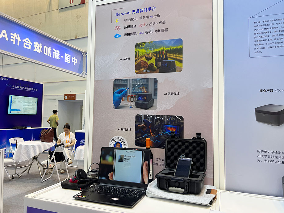 不用品嘗,如何快速了解葡萄酒的產(chǎn)地、品質(zhì)?太赫信息科技的光譜+AI解決方案就能快速“解題”。“我們的‘AI品酒師’,通過(guò)便攜式光譜設(shè)備,結(jié)合譜的數(shù)據(jù)、AI算法,能夠?qū)频娘L(fēng)味、產(chǎn)地進(jìn)行快速分析和判斷。這種無(wú)損檢測(cè)對(duì)消費(fèi)者而言可以更好地選擇喜歡的酒,對(duì)酒莊而言則能夠在釀造過(guò)程中更好地調(diào)控風(fēng)味、提升品質(zhì)。”公司創(chuàng)始人兼CEO張楠介紹,太赫信息科技是新加坡國(guó)立大學(xué)蘇州研究院的孵化企業(yè),此次展會(huì)除了“AI品酒師”,還帶來(lái)了AI藥品檢測(cè)、AI材料分析兩個(gè)將先進(jìn)人工智能算法與光譜分析技術(shù)深度結(jié)合的產(chǎn)品。其中AI藥品檢測(cè)已經(jīng)用于公共安全行業(yè)對(duì)危險(xiǎn)藥品、受管制藥品的快速識(shí)別,AI材料分析則在風(fēng)電葉片等復(fù)合材料的缺陷識(shí)別中擔(dān)當(dāng)起在線級(jí)別檢測(cè)的重任。