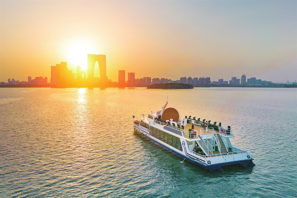 以“四湖兩河”自然資源為依托,2024年水上旅游共接待游客超過(guò)60萬(wàn)人次,同比增長(zhǎng)96%。金雞湖水上公共巴士、中央河新能源微游艇、金雞湖右岸新航線等特色項(xiàng)目層出不窮、加速破圈;金雞湖端午龍舟賽、帆船賽等接連舉辦、彰顯活力。豐富的水上文旅產(chǎn)品帶動(dòng)人氣、聚集商氣,得到央視和人民日?qǐng)?bào)等媒體點(diǎn)贊報(bào)道,成為提升園區(qū)知名度、影響力的新名片,豐富城市休閑生活、旅游特色的新亮點(diǎn)。