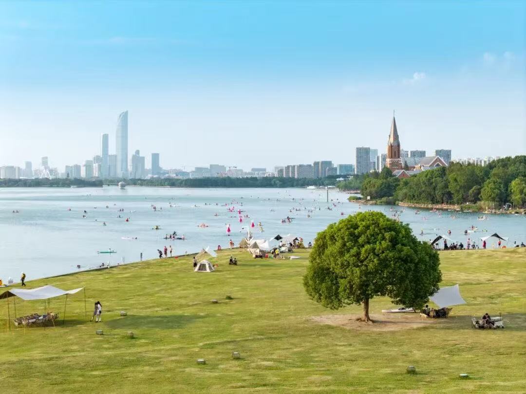 獨墅湖以“讓我們蕩起雙槳”為主題,用動感體驗、人文書香點燃科創(chuàng)之地的青春活力。今年夏天,劃槳板、吹湖風(fēng)、追日落成為獨墅湖上的新風(fēng)景,也讓獨墅湖成為年輕人揮灑活力、釋放激情的潮流目的地。嘉年華期間,獨墅湖高校槳板爭霸賽、金秋龍舟賽等水上活動項目將陸續(xù)展開。園區(qū)特色文旅IP“右岸秋月夜”也將走進一棵樹營地,再現(xiàn)臺上臺下共鳴、萬人合唱的經(jīng)典場景。獨墅湖教堂的莊嚴(yán)、白鷺園的多彩……讓游客充分感受四季之美、人文之美,悠享舒適。