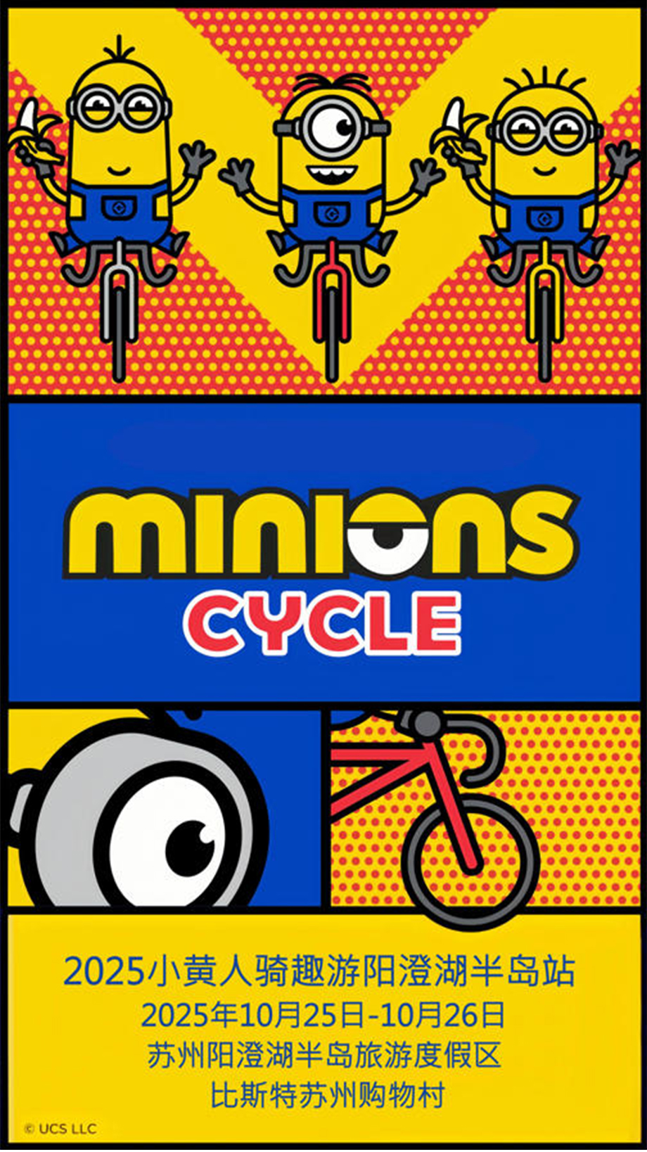 陽澄湖畔,秋意日漸濃郁,正是“滿澄盡啖黃金甲”的詩意時節。園區“金秋·三湖嘉年華”熱度未減,蘇州陽澄湖半島旅游度假區又迎來一波“萌趣風暴”——小黃人粉絲們,速來集合!10月25日至26日,2025小黃人騎趣游陽澄湖半島站,帶你解鎖一場“騎行+趣玩”的周末微度假。