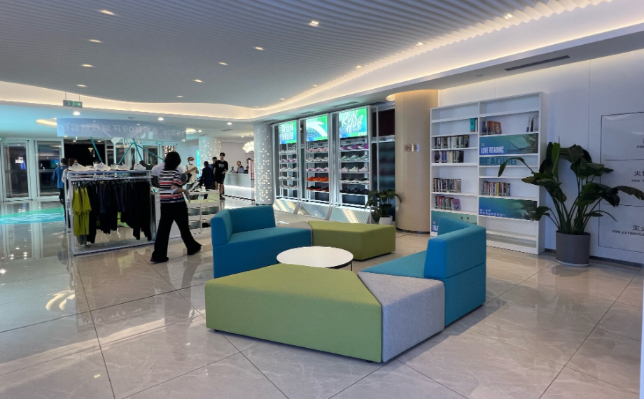 走進(jìn)跑者驛站,明朗的色彩搭配洋溢著城市與運(yùn)動的活力。衣物寄存、淋浴服務(wù)、裝備租賃、能量補(bǔ)給和社群活動五大功能區(qū)域有序規(guī)劃,不僅解決跑者“負(fù)重跑步”“運(yùn)動后煥新”的痛點,還通過跑鞋等裝備租賃,提升“說跑就跑”的自由體驗。
