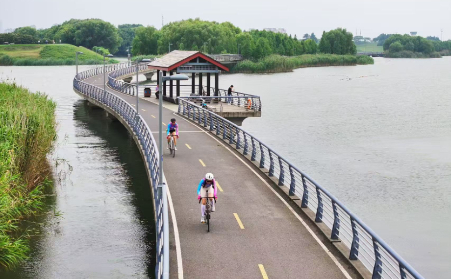 位于蘇州陽澄湖半島旅游度假區(qū)的環(huán)湖自行車道,是蘇州首條環(huán)湖觀光休閑自行車道,依陽澄湖岸線而建,全長約50公里,含7公里水上段,在這里騎行,一路可盡賞湖光水色、草木蔥蘢的自然風(fēng)光。而在這條自行車道沿路,遍布著11個“騎遇驛站”,將水澤驛站(omitofee咖啡)、蓮池湖公園、半島足球公園等景點以及島上各大度假酒店串聯(lián)起來。