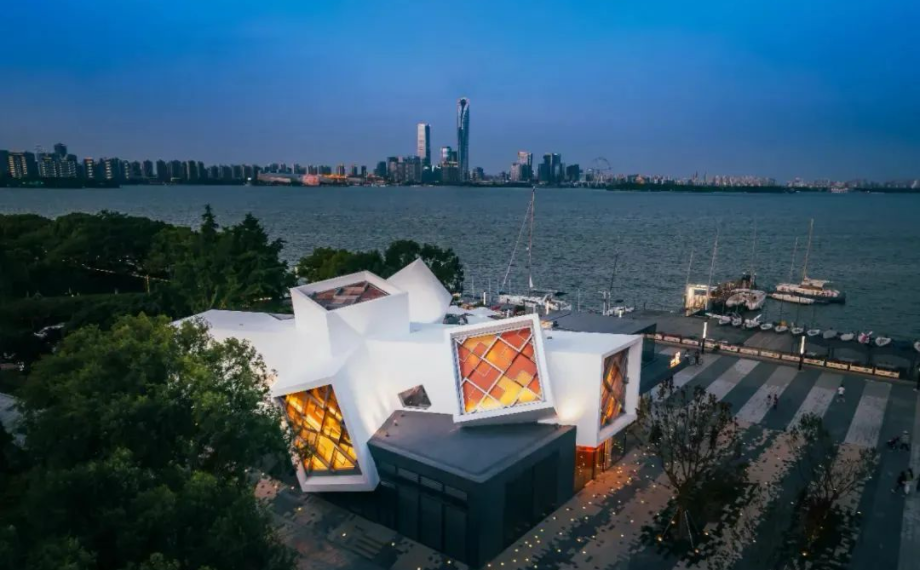 走進(jìn)金雞驛01,原木色建筑與湖景相映成趣,在這里,市民游客可以手捧一杯溫?zé)岬目Х龋c東方之門合影,將時光定格為有氛圍感的記憶。金雞驛02以“蘇州色卡”打造現(xiàn)代感空間,黑盒子基座搭配白色筒體,橙色點綴彰顯活力;驛站聯(lián)動風(fēng)之園碼頭提供帆船、槳板、皮劃艇等水上體驗,引領(lǐng)市民游客解鎖“乘風(fēng)破浪”的快樂。金雞驛06獨(dú)特的帆船造型設(shè)計是沿湖的視覺焦點,這里還承辦帆船專業(yè)賽事、開放帆船體驗項目,讓市民游客在暢游湖面之余盡覽東方之門與桃花島美景,驛站二層的全景露臺更是體驗金雞湖浪漫落日的絕佳位置。金雞驛11則以竹飾面漸變曲面呼應(yīng)周邊雕塑,將自然野趣與高端體驗巧妙融合,打造戶外露營主題驛站,提供裝備租賃、探險咨詢與24小時補(bǔ)給,滿足從新手到資深玩家的多樣需求……