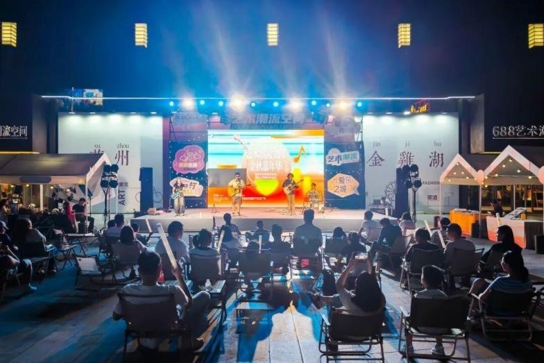 而688藝術潮流廣場的“微醺盟友集”則將巧妙地將運動觀賽、晚風音樂會、微醺市集與藝術展覽融為一體,營造出“潮流藝術季”專屬的蘇式夜生活氛圍。創意市集區燈光閃爍,年輕人群手持特調飲品穿梭于各色攤位之間,不時駐足挑選手作好物、拍照打卡,氛圍輕松熱烈,同步開展的藝術展覽吸引了不少文藝愛好者靜靜觀賞。系列活動帶動688藝術潮流空間周末夜間客流顯著增長,不少餐飲商戶營業額實現同步提升,打造出充滿年輕活力的消費集聚區。