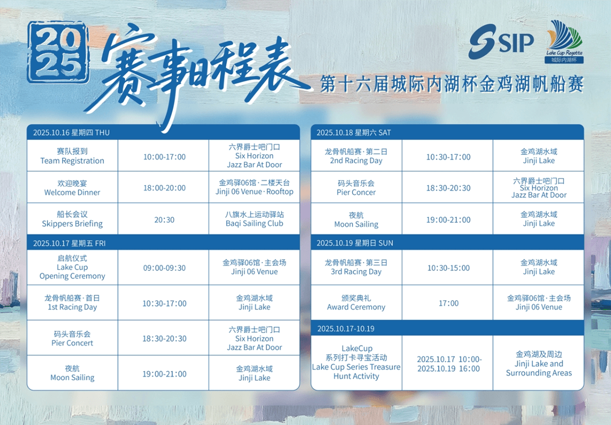 秋風送爽,彩帆再啟。2025第十六屆城際內湖杯金雞湖帆船賽將于10月16日至19日在蘇州金雞湖正式啟幕。作為蘇州工業園區三大品牌體育賽事之一,該賽事已成功舉辦十五屆,本屆賽事以“同帆共進,聚勢無雙”為主題,聚焦“國際競技之力、水岸文旅之韻、全民樂活之美”三大維度,通過多國選手同臺競技、專業與大眾相結合的賽制設置,以及體育、文化、旅游元素的深度融合,打造獨具江南文化特色的城市體育名片。群帆競渡,共逐金雞湖本屆賽事設置專業龍骨帆船賽與大眾趣味系列賽兩大板塊。專業龍骨帆船賽涵蓋J80、DC20及FT7.5三大船型;大眾賽事則以槳板與皮劃艇為主,零基礎選手亦可輕松參與,體驗水上運動的樂趣。賽程設置豐富多... [詳細]