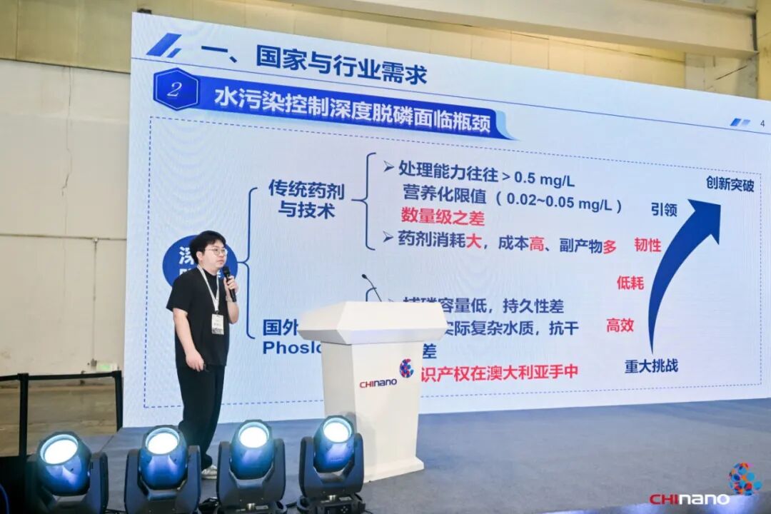 蘇州拓撲分子科技有限公司研發經理張濤,介紹了《基于納?互鎖捕磷劑的新型材料、裝備與技術保障體系的建立》。該公司科研團隊經過對金屬中心的對離子不斷地調控,發展了以碳酸根為對離子的新型吸附活性位點,并利用結構相似性提高磷吸附自發性、交換配位可逆性和pH適用范圍,降低磷吸附與脫附的活化能壘,拓展了磷吸附劑的實用韌性,并突破了傳統認知。