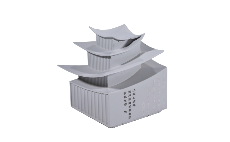 在作品創(chuàng)作環(huán)節(jié),3D打印、機(jī)器刻制、彩色噴繪等新技術(shù)得到廣泛應(yīng)用,推動(dòng)藝術(shù)表達(dá)實(shí)現(xiàn)新突破。蘇州圓融發(fā)展集團(tuán)創(chuàng)作的《當(dāng)代美術(shù)館》印章,通過(guò)提取建筑核心結(jié)構(gòu)造型,運(yùn)用3D打印技術(shù)精準(zhǔn)還原,素白色調(diào)既呼應(yīng)蘇州“粉墻黛瓦”的傳統(tǒng)意蘊(yùn),又凸顯現(xiàn)代建筑的線條美感,實(shí)現(xiàn)了傳統(tǒng)形制與科技精度的巧妙融合。創(chuàng)作者代表曹余露分享道:“創(chuàng)作過(guò)程中我們的模型經(jīng)過(guò)了反復(fù)的修改,就是為了既能體現(xiàn)建筑的飛揚(yáng)氣勢(shì),又保留篆刻藝術(shù)的韻味。”正是這種精益求精的創(chuàng)作態(tài)度與先進(jìn)技術(shù)的結(jié)合,讓傳統(tǒng)藝術(shù)在當(dāng)代煥發(fā)出新的生命力。