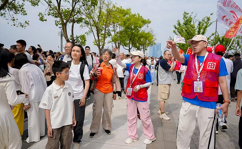 “體驗區請往這邊走!”在非遺科技龍舟體驗區,網格長楊章繹正熱情地為游客指引方向。“前期我們進行了踩點、人員安排等,今天我六點半就到現場待命了。這次我主要負責非遺科技體驗區游客問詢、觀賽引導及秩序維護等工作。”楊章繹是來自園區企業江南嘉捷的員工,也是一名資深志愿者。自金雞湖端午龍舟賽首次招募志愿者開始,他就一直報名參與賽事的志愿服務工作?!澳軌虺掷m為園區大型賽事貢獻自己的力量,我覺得很快樂也很自豪。我們要通過完善的服務,展現蘇州和園區的城市溫度?!?/p>