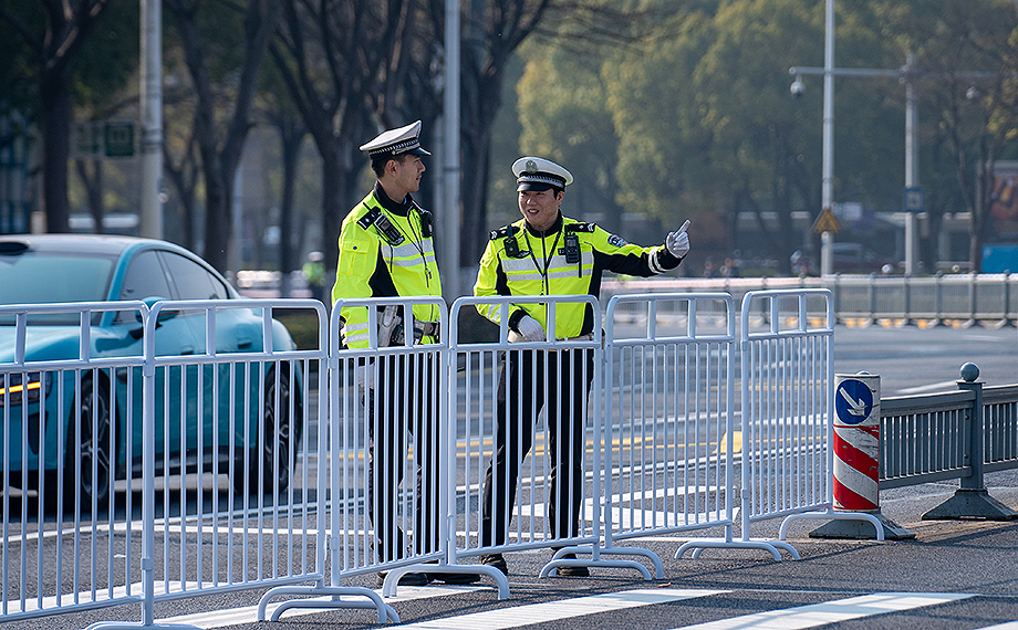 賽事現場,人頭攢動,熱鬧非凡。園區交警大隊湖西中隊的楊遠哲正和同事們默契配合,進行賽區外圍的秩序維護、人群疏導等工作。他曾參加過環金雞湖半程馬拉松等大型活動安保工作,有著豐富的賽事保障經驗。他介紹,隨著龍舟賽的影響力不斷提升,市民游客參與的熱情逐年高漲,這對現場護航工作也提出了更高要求?!敖衲甑凝堉圪愇抑饕撠熡^賽區域外圍三級分流區的交通管控。我們在賽前一周已對交通管理預案進行了演練。今天,我們在開賽一個多小時前就將警力部署到位,及時開展周邊巡邏?!睏钸h哲說。