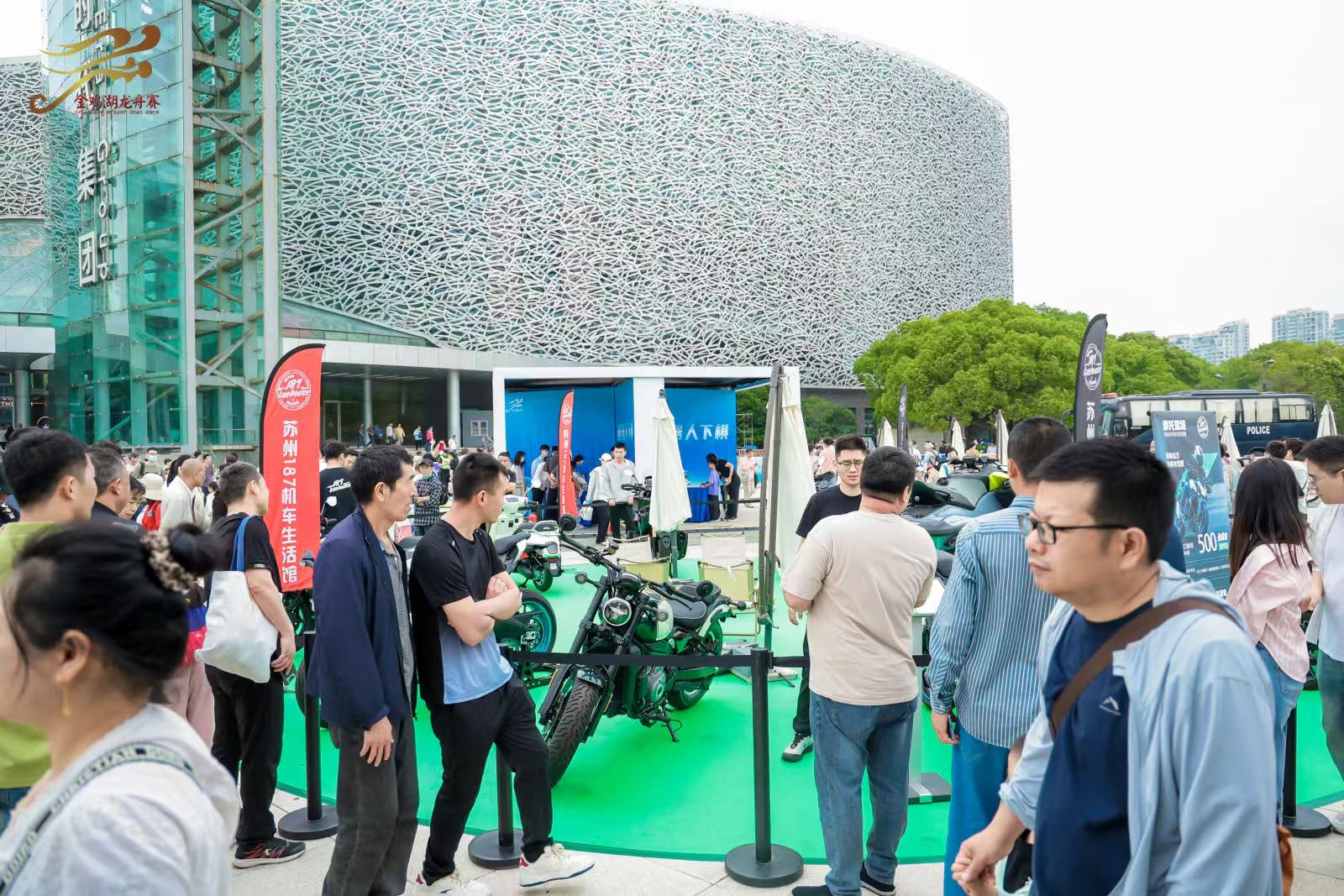 賽場(chǎng)周邊,“華夏同心集”熱鬧開市,“FUN承非遺”金雞湖龍船市60+非遺文化體驗(yàn)、688藝術(shù)潮流公園市集、“龍舟有好市”民族美食市集,帶來200+寶藏?cái)偽坏姆欠搀w驗(yàn),吸引大量市民游客駐足。“科技龍舟體驗(yàn)展區(qū)”帶你穿越未來,智能飛行汽車蘇州首秀,腦機(jī)意念黑科技、VR龍舟競(jìng)速、AI龍舟畫展,傳統(tǒng)龍舟秒變科技大片現(xiàn)場(chǎng)。