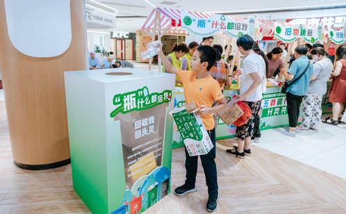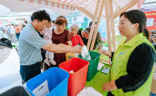 趣味游戲區的創意設計亮點頻出。居民們手持打卡地圖,穿梭于“垃分視力表”“分類大轉盤”“綠色補給站”等八大互動點位,通過趣味測試、知識問答、投擲游戲等方式邊玩邊學。“‘瓶’什么都給我”專區人氣爆棚,居民王阿姨用積攢的飲料瓶兌換了綠蘿,笑得合不攏嘴。“城投再生”“綠色補給站”和“舊物煥新”專區也深受居民青睞,居民們拎著紙箱、舊衣物排隊兌換環保袋、文具等實用物品,直觀感受到“垃圾是放錯位置的資源”。游戲化體驗不僅提升了垃圾分類知識的趣味性和互動性,更讓居民在輕松愉悅的氛圍中掌握分類技巧、提升環保意識。針對還不太熟悉如何正確分類的居民,志愿者則一對一講解垃圾分類知識,實現寓教于樂“零距離”。此外,志愿者們還同步宣傳倡導“光盤行動”“限塑”“減少使用一次性用品”等源頭減量、簡約適度的生活方式。