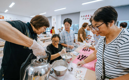 在隨后開展的“家風微分享”環節,樓道長代表踴躍發言,既有結合中秋講述敬老愛幼的意義,也有分享“勤儉持家”“誠信為本”的家訓故事,更有講述幫助獨居老人、鄰里分享美食等樓道暖心事例。“治理大家談”環節則圍繞環境衛生、鄰里調解、設施維護、消防安全等民生議題展開討論,居民們積極建言獻策,為社區工作提供了寶貴參考。活動還設置了冰皮月餅制作環節。在志愿者指導下,居民們分組協作,將制作完成的月餅贈予社區高齡老人、孤寡老人及新就業群體,讓節日溫暖在社區傳遞。
