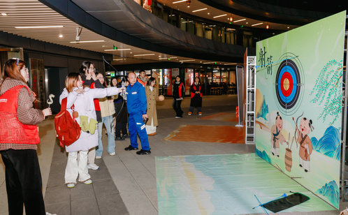 作為市集“集券核心打卡點”,古風運動區(qū)的蹴鞠、射箭、投壺三大項目一經(jīng)開放就人氣拉滿。活動以游園券作為通用兌換憑證,完成運動項目即可獲取,趣味與挑戰(zhàn)性拉滿。現(xiàn)場,紅色管家志愿者全程在線指導規(guī)則、示范動作,青年情侶、好友組隊摩拳擦掌踴躍參戰(zhàn)。蹴鞠場地里,大家瞄準目標全力開踢,命中瞬間的歡呼聲此起彼伏;射箭區(qū)域內(nèi),年輕人踮腳拉弓、精準瞄準靶心,專注模樣收獲一眾點贊;投壺項目前,參與者屏息凝神投放箭矢,每中一支都忍不住歡呼喝彩。不少青年組隊PK挑戰(zhàn),在競技互動中拉近距離,一張張游園券不僅是實力的證明,更裝滿了歡樂時光。