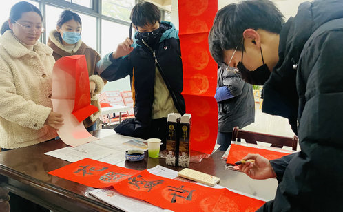 在“筆墨迎春”區,大學生書法愛好者現場揮毫潑墨,為居民書寫春聯和福字。“一元復始呈興旺,萬象更新展宏圖”“春回大地千山秀,日暖神州萬物榮”……一副副筆力遒勁的春聯鋪滿長桌,墨香四溢。居民們或挑選心儀的對聯,或排隊等待“定制”祝福。活動共送出春聯200余副,將節日的喜慶傳遞到家家戶戶。這場熱鬧的市集背后,是10余名志愿者的默默付出。他們中有退休黨員、網格員,還有放假返鄉的大學生。20歲的大學生志愿者小范負責維持秩序,他說:“看到爺爺奶奶們滿意的笑容,我覺得所有辛苦都值得。能為社區貢獻力量,這個寒假特別有意義。”