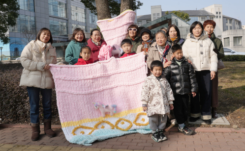 “我們的節日·春節”前夕,蘇州工業園區婁葑街道的街頭出現了一道溫暖而別致的風景線——38棵行道樹披上了色彩斑斕、織工精巧的“馬年毛衣”。這些充滿童趣與暖意的“大樹毛衣”,出自婁葑街道老年大學“銀齡毛線”班學員之手。她們以近兩個月的時間,用一針一線的巧思為街道織出濃濃年味,也鮮活詮釋了“老有所為”的豐富內涵。