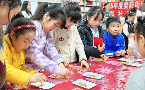 隨著“年俗集市暢玩”環(huán)節(jié)正式啟動,現(xiàn)場氣氛愈加熱烈。集市精心設(shè)置三大體驗區(qū),供親子家庭自由游覽、集章打卡。手作區(qū)內(nèi),“拓印迎福”攤位前,孩子們親手印制馬年主題紅包,吉祥圖案承載著真摯祝愿;“巧手剪紙”攤位上,紅紙在折疊與剪裁間變幻出精美紋樣,展現(xiàn)傳統(tǒng)技藝的精妙;DIY馬年冰箱貼制作攤位旁,孩子們用繽紛的色彩創(chuàng)作出獨一無二的裝飾,定格新春記憶。傳統(tǒng)美食區(qū)里,晶瑩剔透的冰糖葫蘆備受歡迎,大家邊品嘗邊交流,甜蜜的滋味在歡聲笑語中蔓延。游戲區(qū)的“套馬桿”投壺挑戰(zhàn)吸引了不少孩子踴躍參與,每當(dāng)命中目標(biāo),現(xiàn)場便響起陣陣歡呼。特別設(shè)置的“年貨大街”更是成為鄰里分享的平臺,居民們互相交換傳統(tǒng)點心和自制零食,溫情在傳遞中悄然升溫。