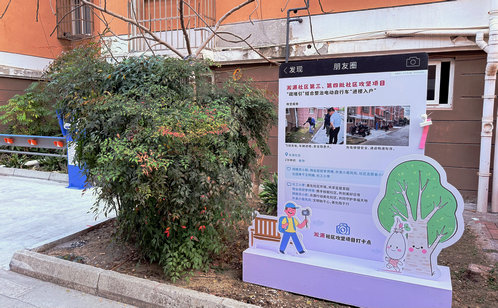 針對老年居民多、對智能充電設施接受度低、經濟顧慮重的實際情況,淞源社區創新推出“即插即用”式戶外防雨充電樁,并完成電路改造降低充電費用。同時,社區實施“疏堵引”三級治理策略,通過安裝護欄、樓道監控及持續引導,使飛線充電整改率達98%,并累計完成121處地面硬化,121套適老化充電樁實現全覆蓋,以“柔性”治理有效減少電動自行車違規入戶現象。