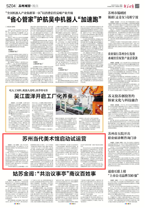 自2024年以來,當代美術館跳出物理圍墻,先后在蘇州工業園區商業中心、圖書館、街頭櫥窗等城市各處,推出了“宋冬:吃城市”“胡尹萍:雜格嚨咚”“趙仁輝:都市荒野偵探”等藝術項目,通過“空間生產力”“右岸講堂”“工作坊”“八點半以后”等59場預熱活動,觸達超40萬人次,初步展現出其作為城市文化引擎的策源能力。館方表示,未來將匯聚全球優質藝術資源,搭建國際交流平臺,推動當代藝術傳播與公共文化素養提升。