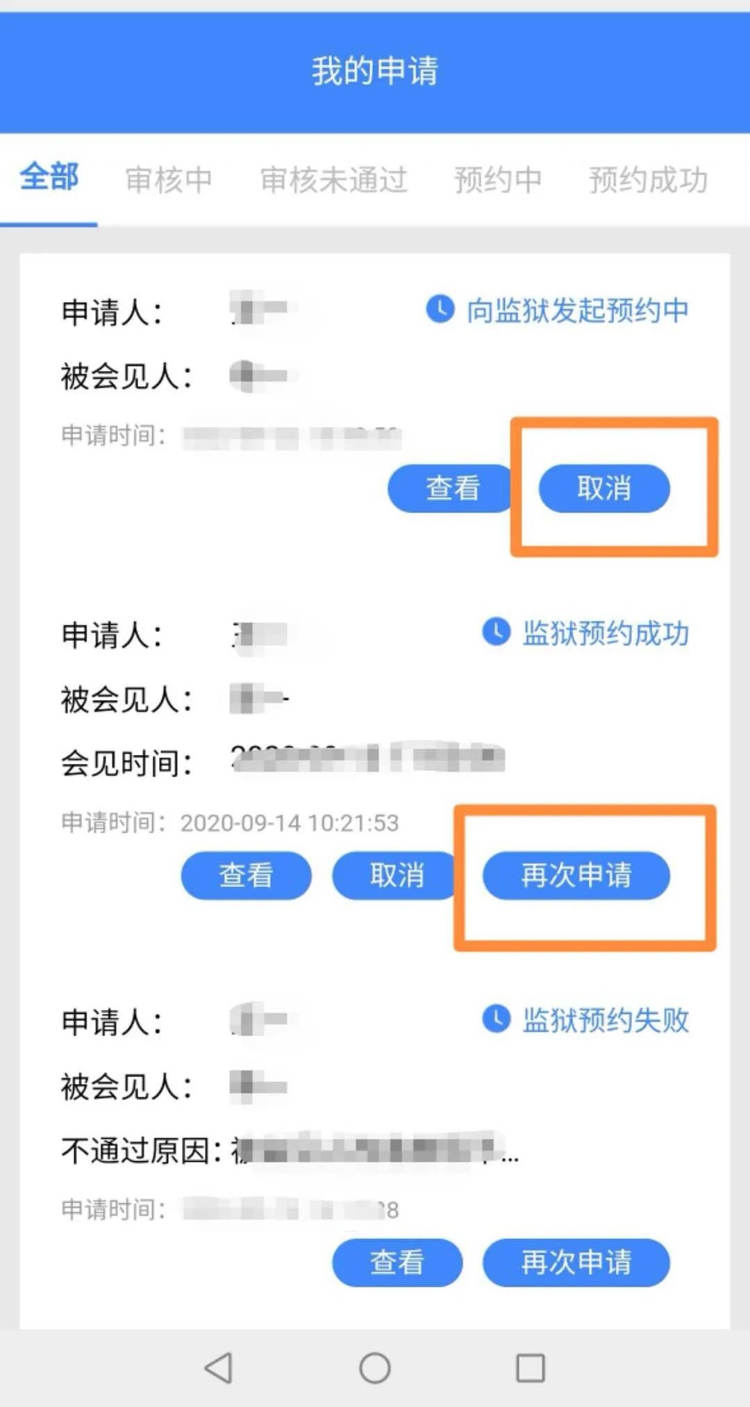 會見申請提交后,請耐心等待。后臺工作人員將對會見人資格進行初審,初審通過后,向相關監獄發起預約,監獄將按照相關會見規定進行再次審核。