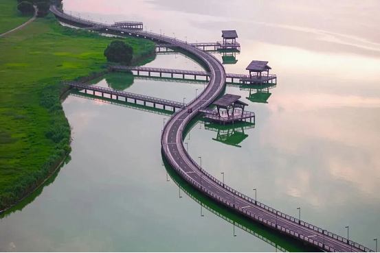 Sports enthusiasts will find their own paradise in SIP. At dawn, they can cycle along the shores of Yangcheng Lake, where morning breezes sweep through lush woodlands and shimmering waters create a serene backdrop. As dusk falls, friends can gather at Moon Bay for paddleboarding, gliding across the golden-glazed surface of Dushu Lake.
