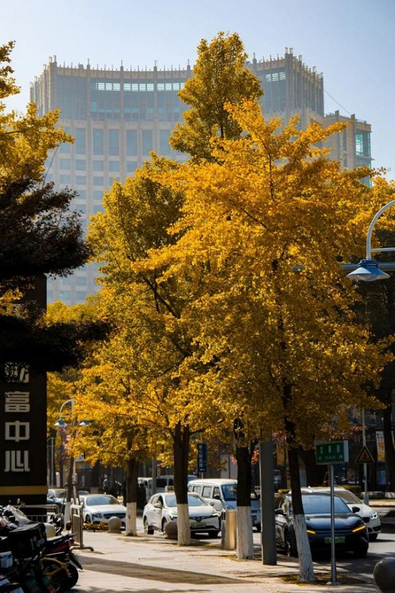 Along the Suzhou Avenue, flanked by modern skyscrapers, the golden hues of ginkgos add the brightest seasonal tones to this urban canvas.