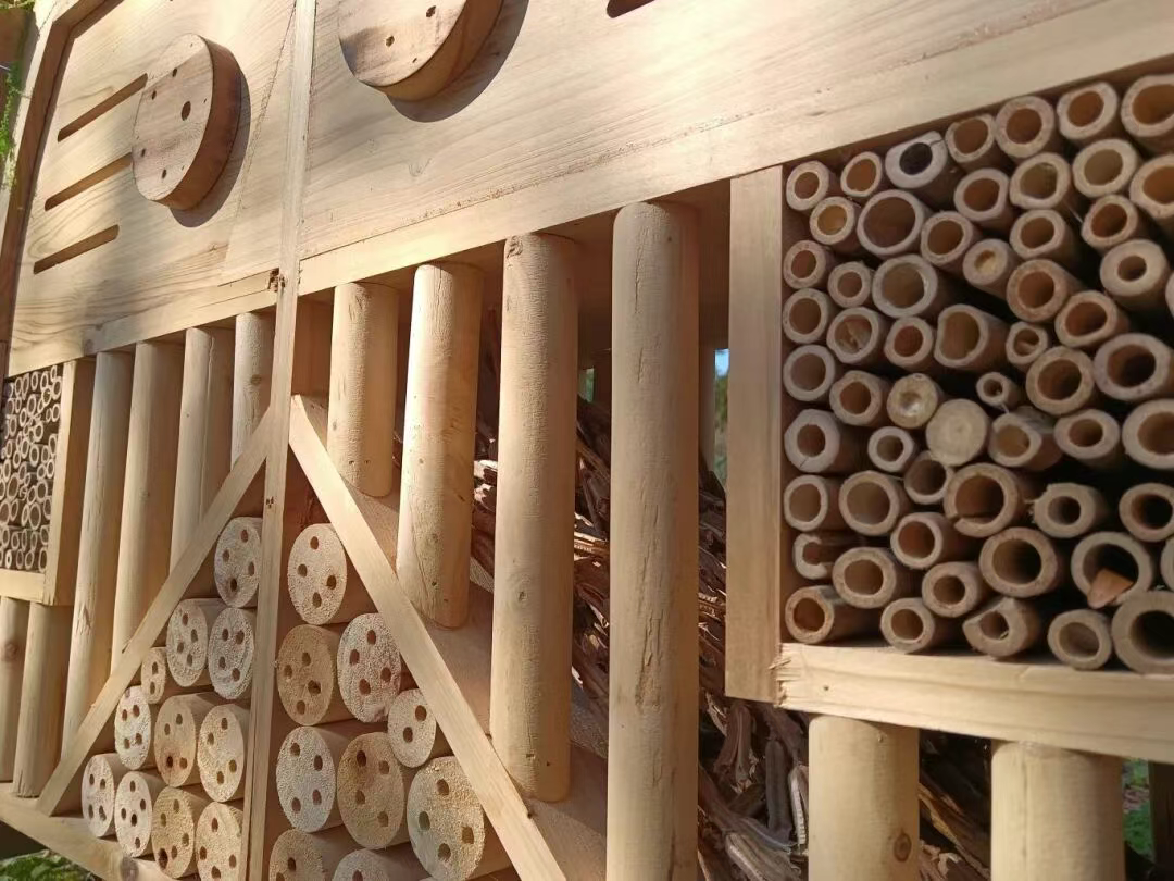 “昆蟲客?!弊鳛橐豁椛鷳B實踐,旨在通過人工方式為城市昆蟲提供棲息場所,進而優化完善自然生態。在園區本地化實踐中,市政服務集團堅持資源循環利用理念,選用鉆孔樹干、竹筒、松塔等天然材料,結合氣候特點進行模塊化設計,為不同昆蟲提供適宜的“安居”空間。
