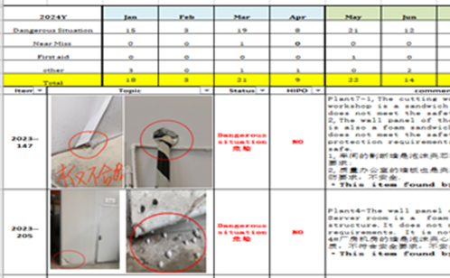另一方面,公司鼓勵員工爭做安全“吹哨人”,只要在日常工作中發(fā)現(xiàn)安全隱患,即可第一時間拍照發(fā)送至公司微信群,由安全管理團(tuán)隊(duì)每日對員工提報隱患進(jìn)行篩選和確認(rèn),每周匯總形成《安全隱患排查追蹤落實(shí)表》,公示至安全角,接受全員監(jiān)督,大大提高了隱患發(fā)現(xiàn)的效率和準(zhǔn)確性。