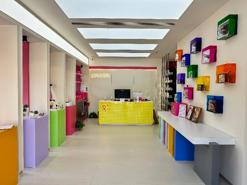 在重云巷入口不遠處,采用多巴胺配色裝修的DPMUSE潮玩商店十分抓人眼球。這是一個從日常熱愛和青年態度中生長出來的品牌,它的名字也承載著雙重內核——DualPassion(多重熱愛)與DramaParadise(玩心樂園)。“我們通過色彩的搭配、大膽的設計,將抽象的‘熱愛’具象化,使產品不僅是物品,更是承載情感與記憶的‘關系禮物’——無論是運動搭子、二次元同好,還是鏟屎官社群,都能在這里找到屬于自己圈層的身份符號?!盌PMUSE主理人朱逸琳介紹道。